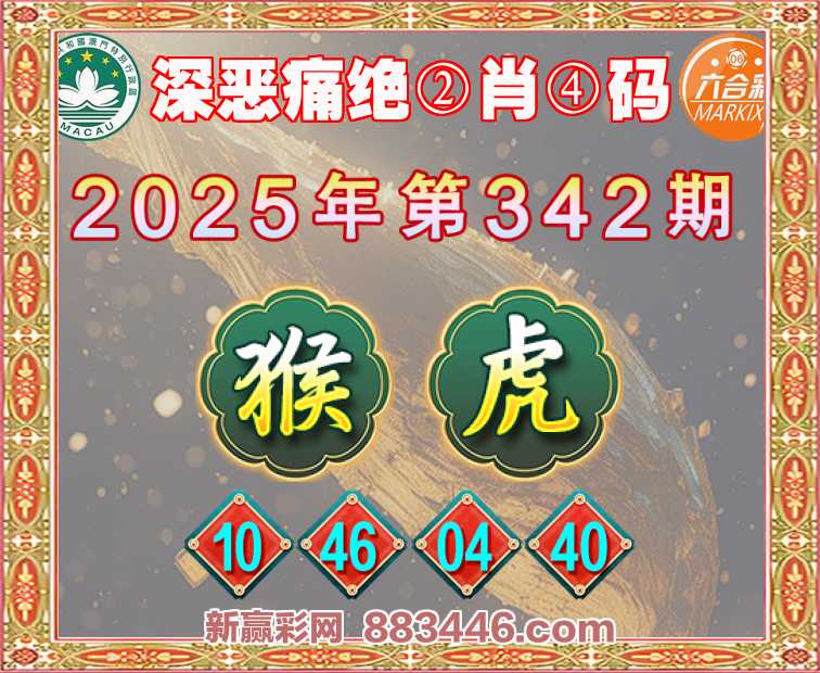 342期: 🐓『深恶痛绝』 🐓②肖④码🐓【猴】【10.46.04.40】开:虎04准上榜高手