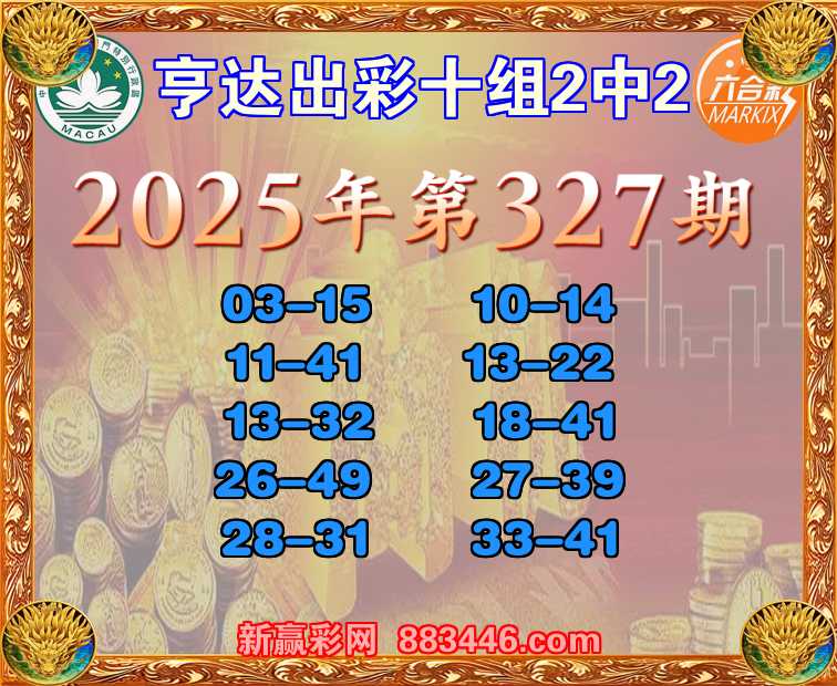 327期:【亨达出彩】 🏵️十组2中2🏵️