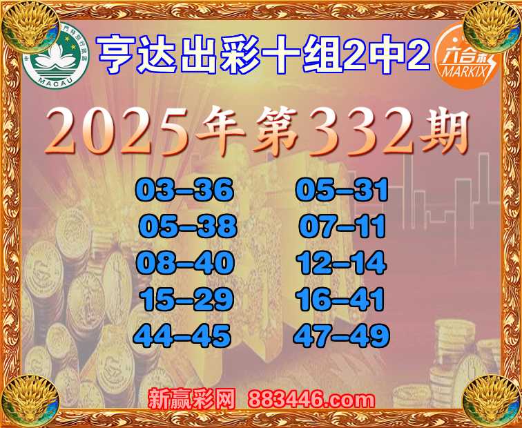 332期:【亨达出彩】 🏵️十组2中2🏵️