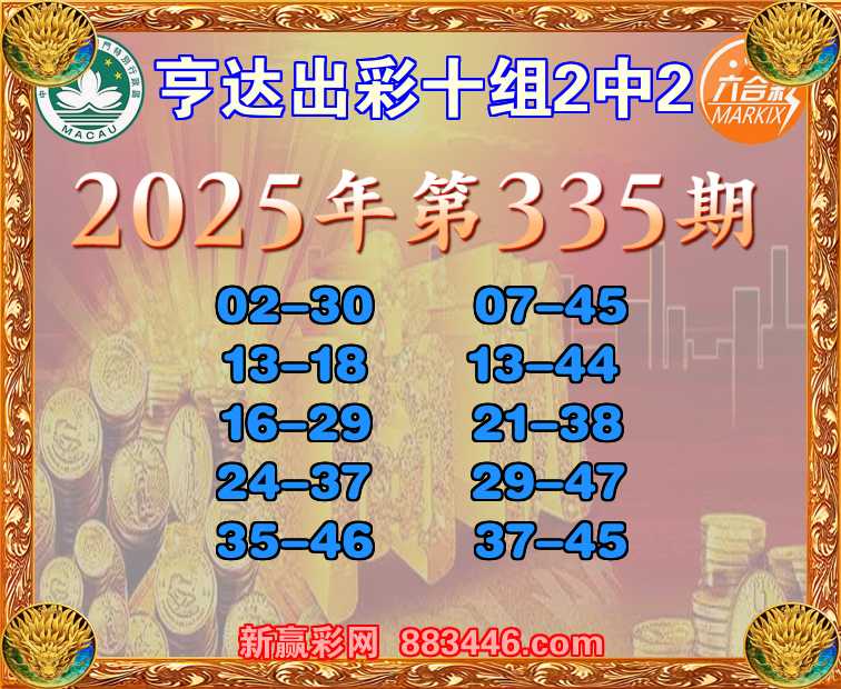 335期:【亨达出彩】 🏵️十组2中2🏵️