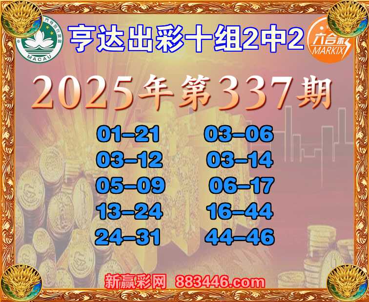 337期:【亨达出彩】 🏵️十组2中2🏵️
